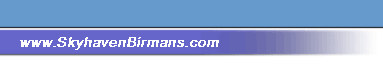 We regret to inform you that Skyhaven Birmans are not in operation. We are no longer breeding for several years. We are maintaining this website because we enjoy sharing our historic photos.